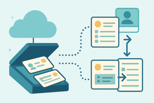 Cloud Scanで【1枚のアンケート】と【2枚の名刺】の通し番号が同じ場合、それぞれにアンケートが紐づく様になりました
