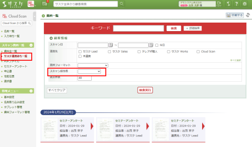 「スキャン資料一覧」の「サスケ連携待ち一覧」について