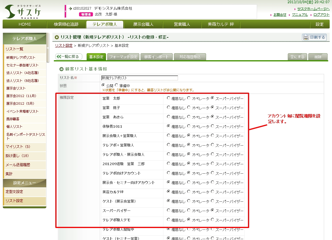 【営業支援ツール-管理者向け(14)-】リスト毎に閲覧権限を!