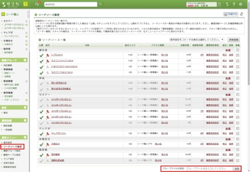イベント情報やリードソース、履歴グループに「グループラベル」機能が追加されました。