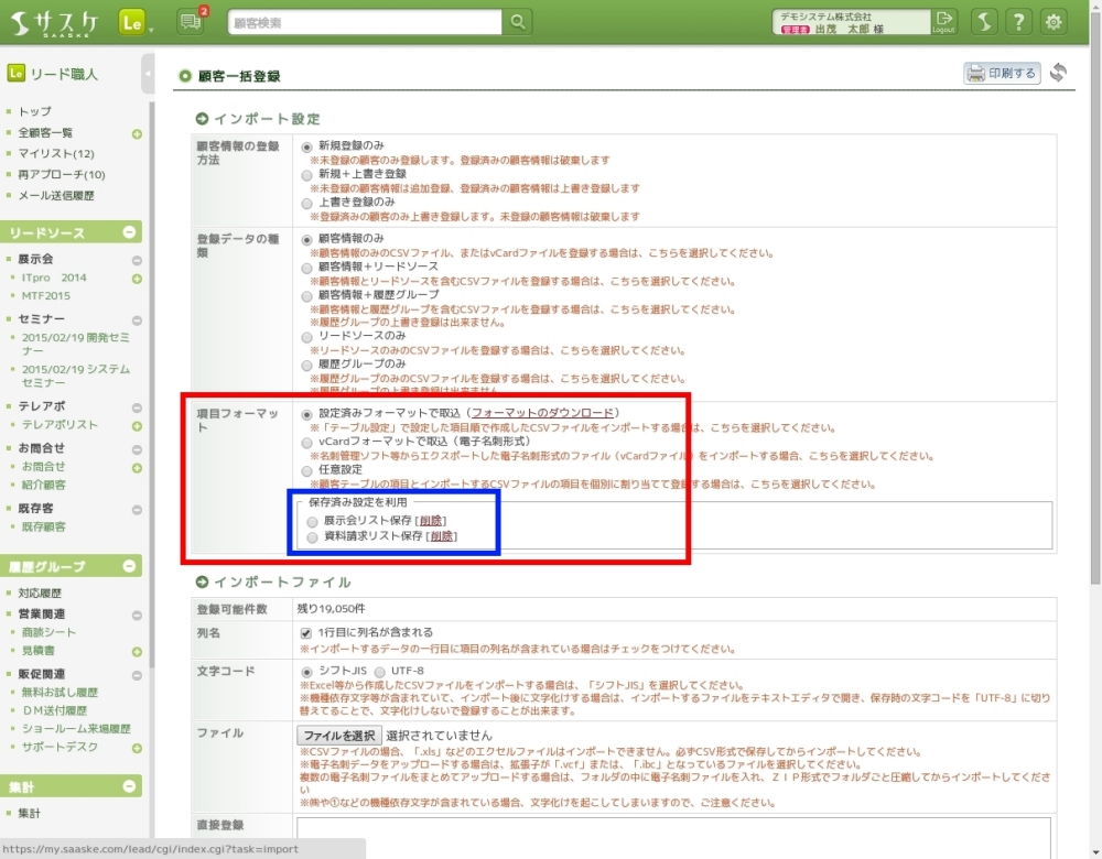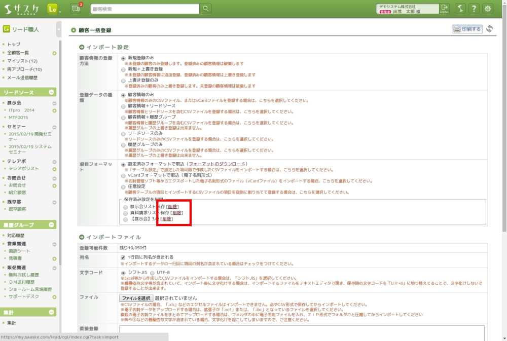 顧客リストのインポート設定を保存する機能となっています。都度インポートするリストがある際には、ご活用頂ける機能となっています。