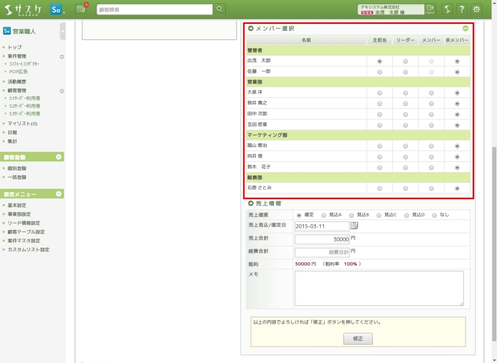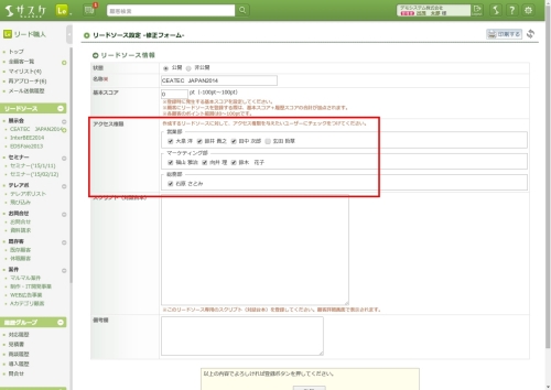 リード職人の再アプローチだけを登録する際、グループ分けされてメンバー一覧が出てきます。こちらの機能については「【再アプローチ】機能を活用してみよう」をご参考下さい。