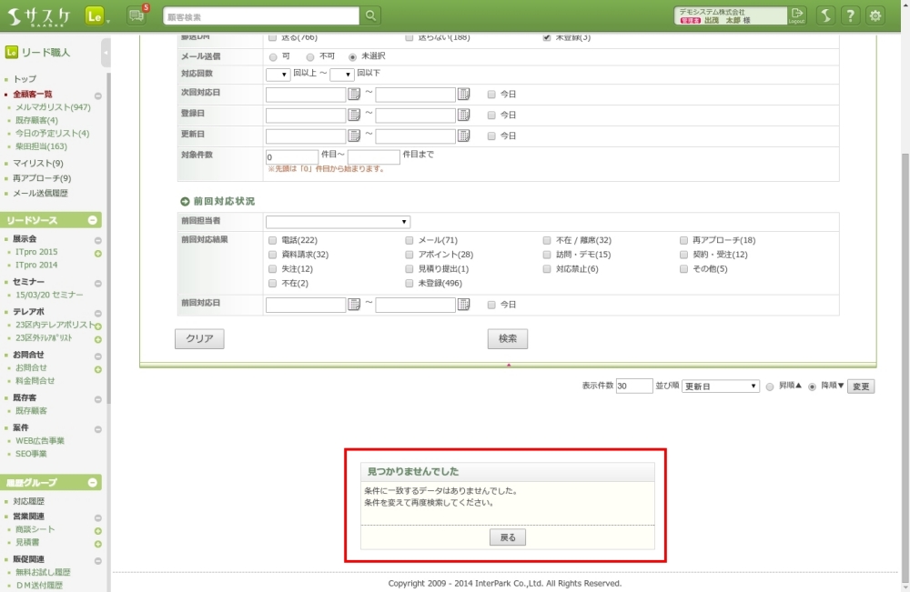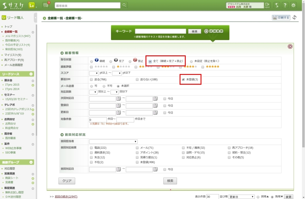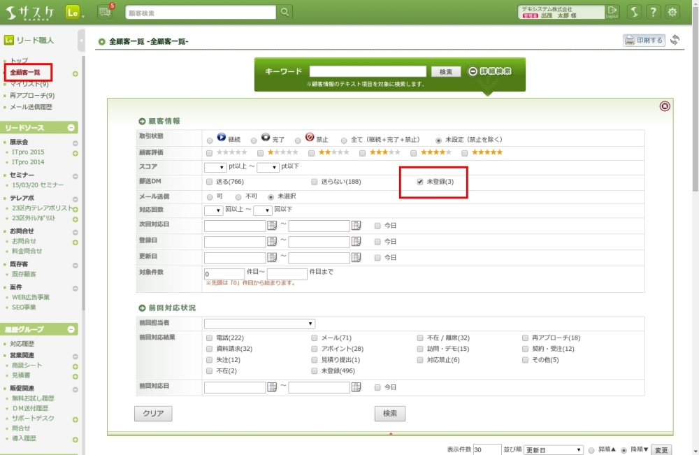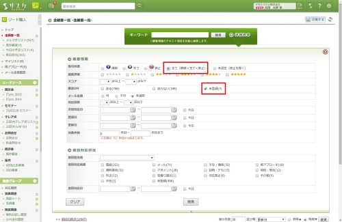 詳細検索で顧客が絞り込めない
