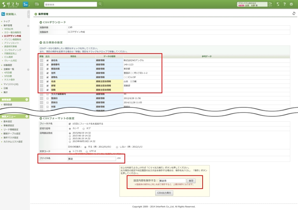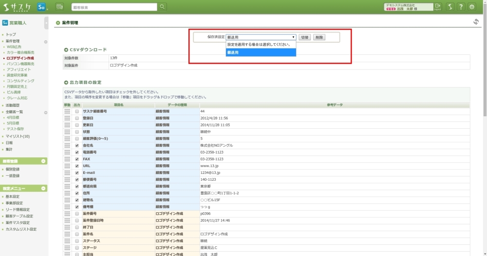 営業職人【案件のCSVダウンロード】と【設定保存】機能