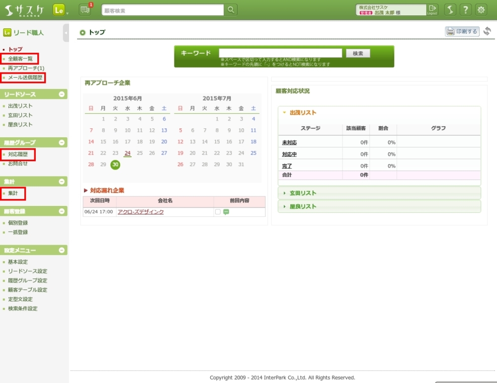 なお、上部の「顧客検索」や「キーワードでの顧客検索」を行いますとリスト外の顧客を検索することが出来てしまいますので、こちらは運用でカバーして頂ければ幸いです。