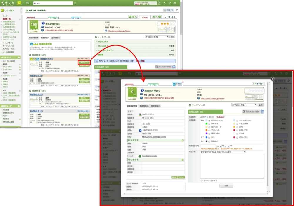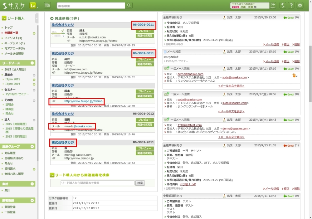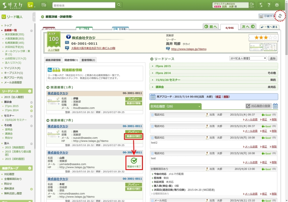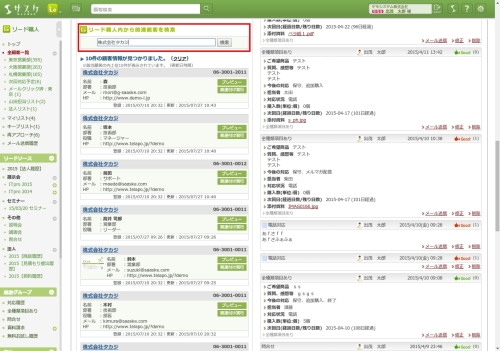 画面下部にある「リード職人内から関連顧客を検索」から該当顧客を検索することが出来ます。