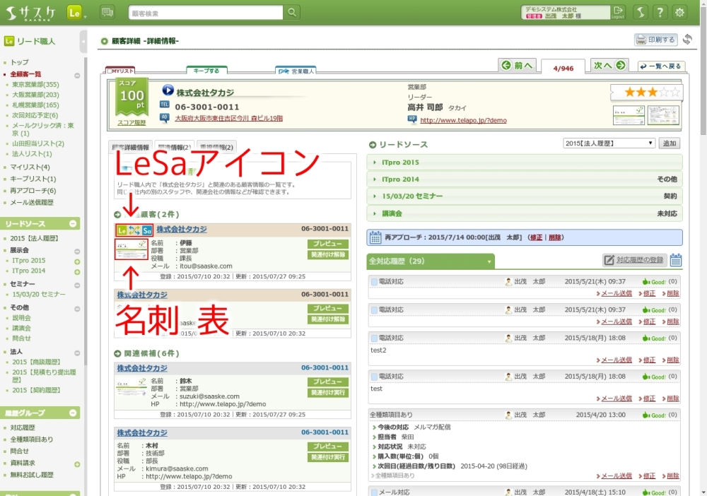 顧客に登録した「名刺 表」の画像が表示されます。 - LeSaア・Cコン