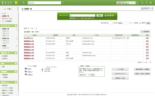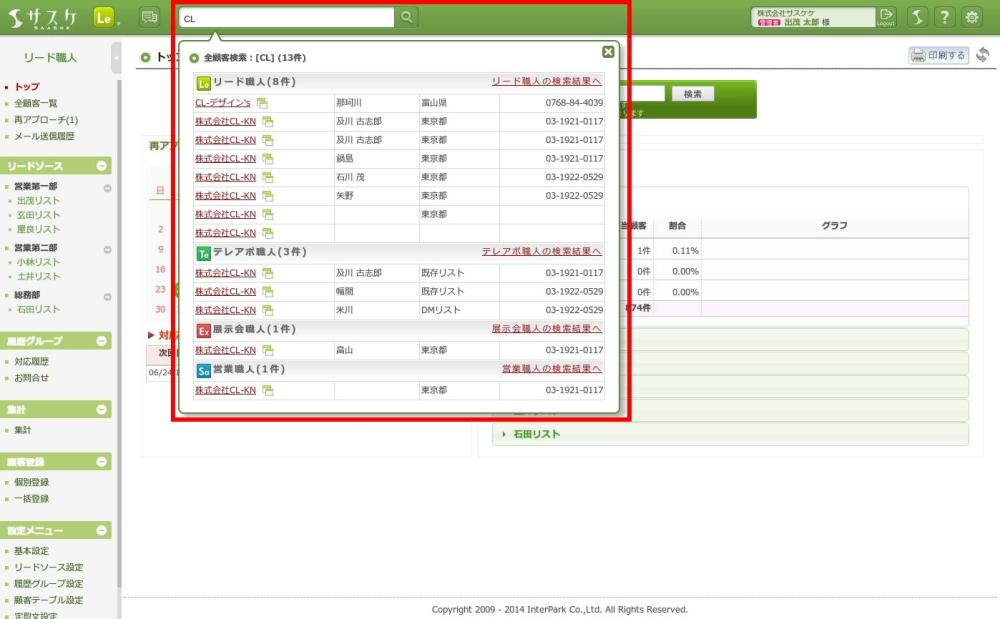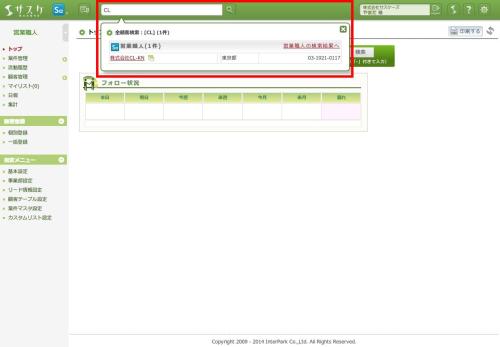 検索結果に該当する顧客を開く場合は「会社名」もしくは「会社名横のアイコン」をクリックします。