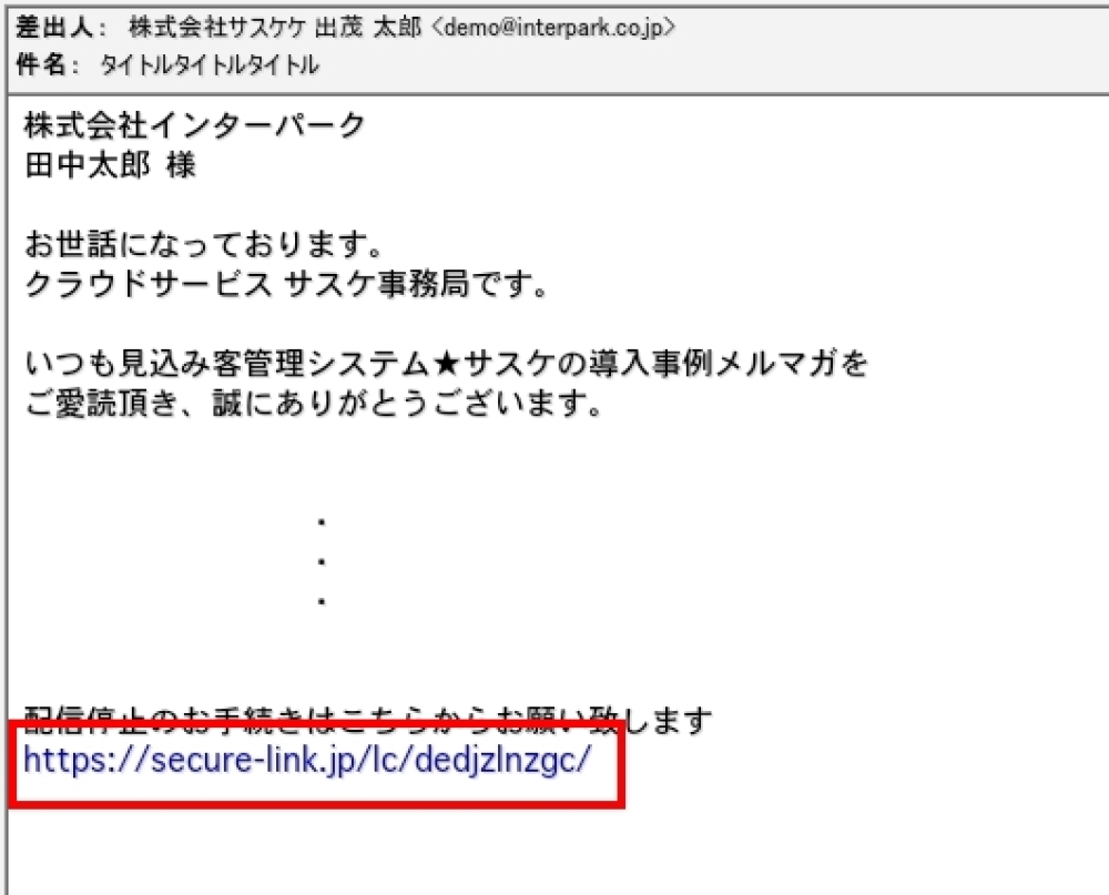 そして実際に受信すると“ https://secure-link.jp/lc/~ ”というURLとして送信されます。