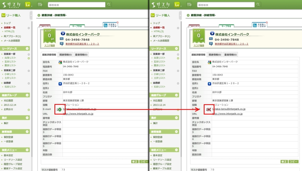テスト用に自分のアドレスが入った顧客を作成し、実際に一括送信メールで試してみます。