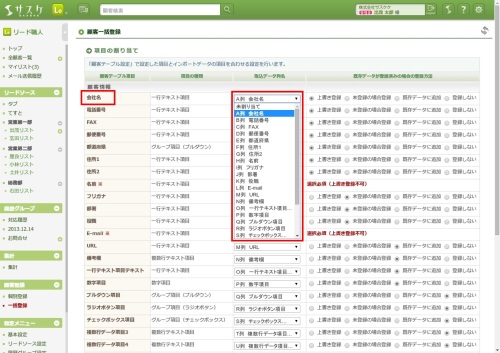 CSVデータなどをインポートする際に、どの項目をどの用に取り込むか、という設定を自分たちで行える箇所になっています。