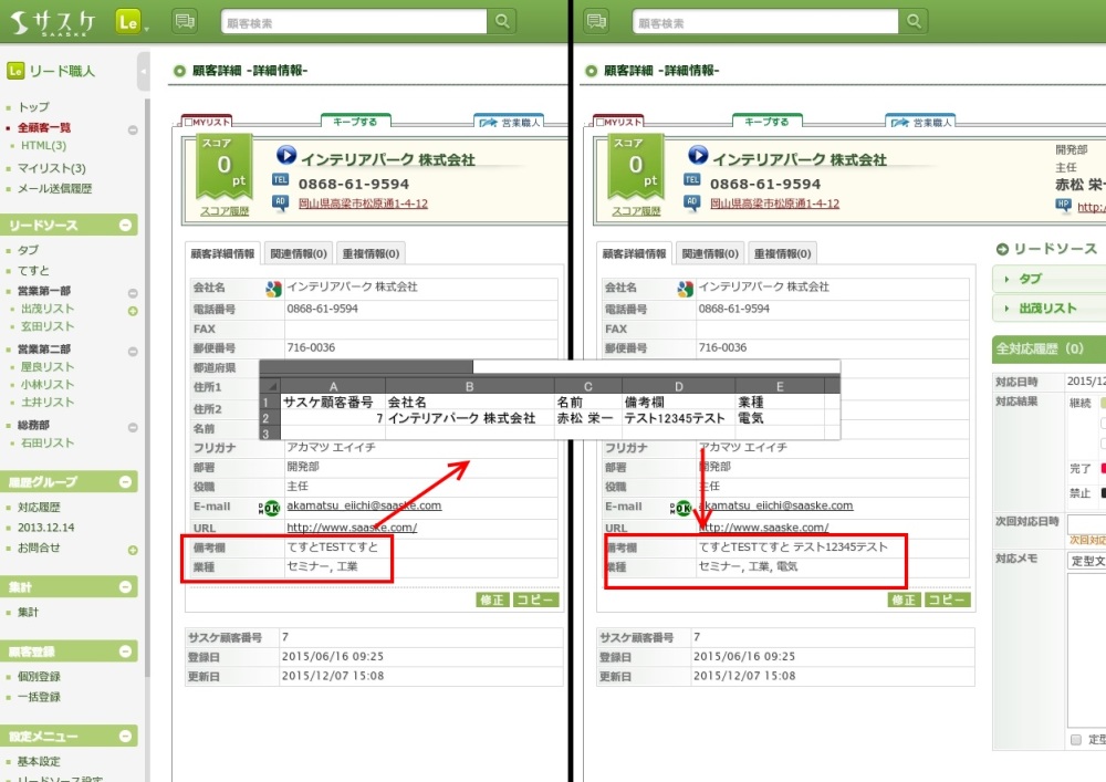 既存データに追加を選ぶと、サスケのデータに対して追加で「エクセルのデータが付与」されます。