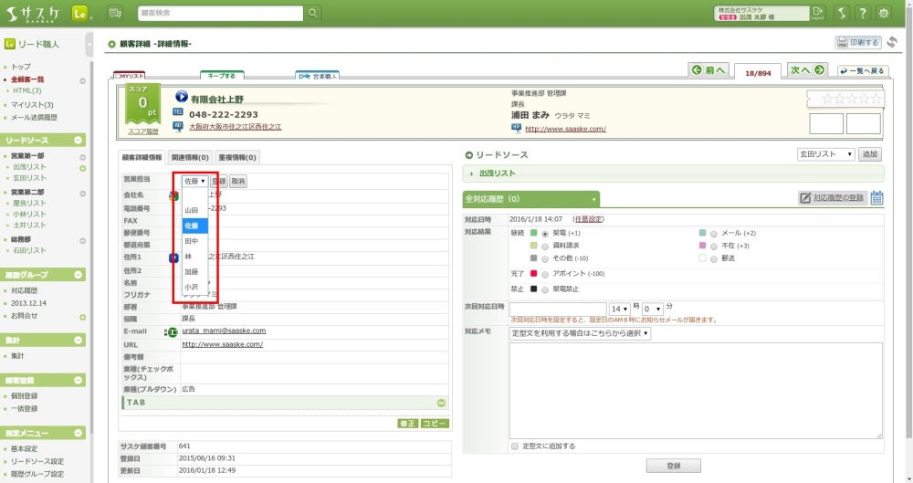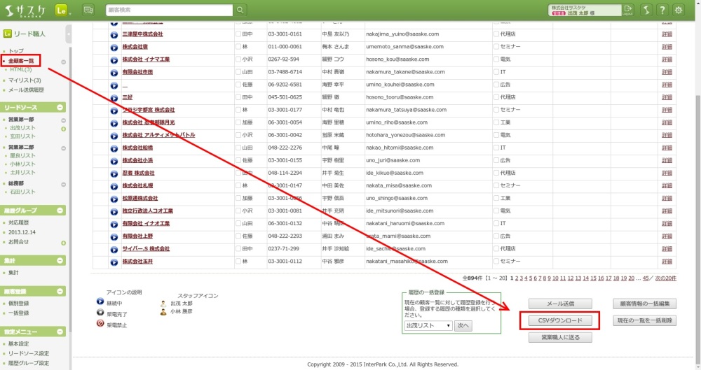 つぎに「営業担当」の情報をダウンロードする必要があります。