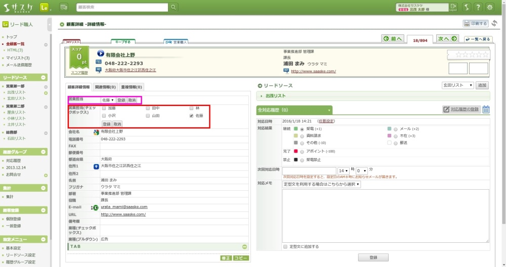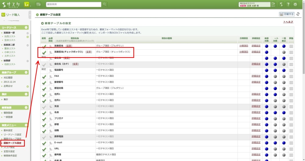 まず始めに、新しくチェックボックスの「営業担当」項目を作成する必要があります。