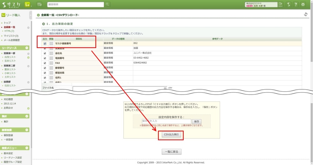- 既存顧客データとの紐付方法:サスケ顧客番号