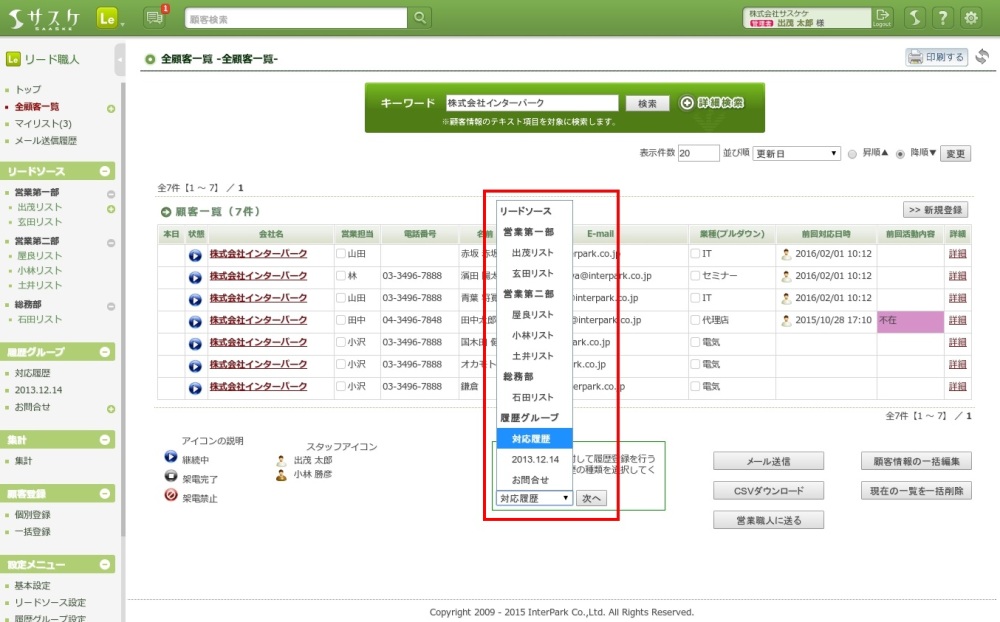 サスケをお使いの際、一括で対応履歴を残されたいときがあると思います。