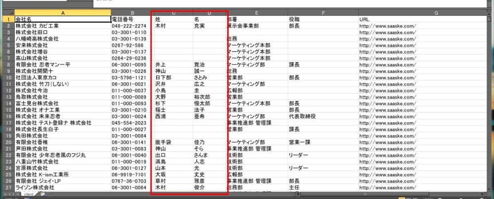 「姓」と「名」など、セルが別れている情報を「姓名」のように、1つにくっつける・結合する方法をご紹介します。