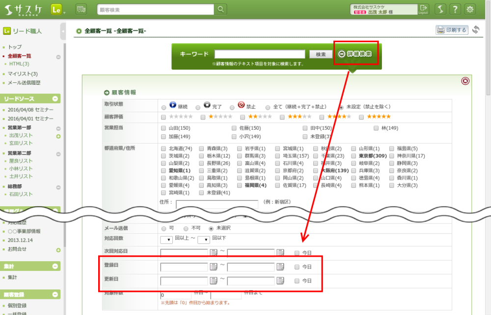 「登録日」と「更新日」の検索