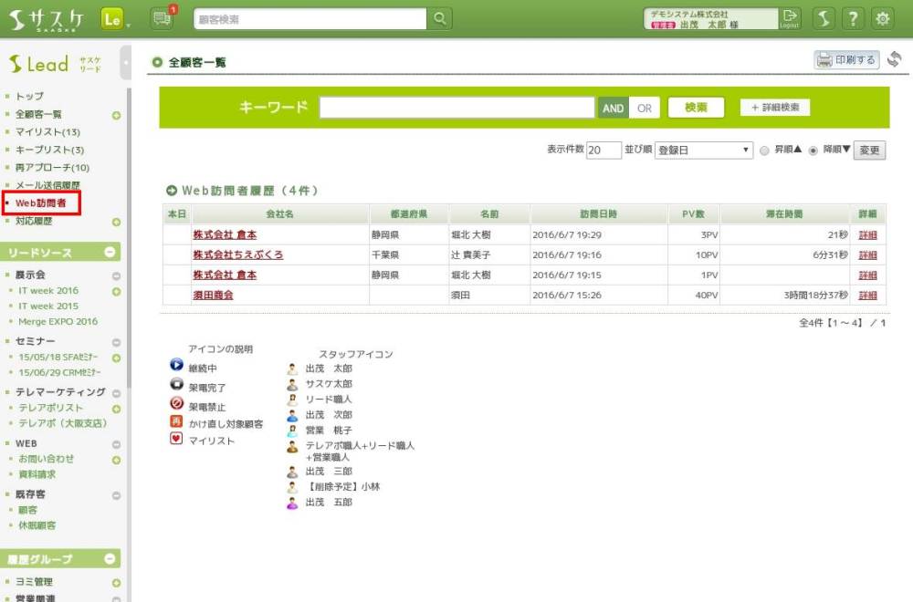 Web行動解析はサスケLeadから送った「カウンタ付リンク」のURLを踏んだ際の、ページ遷移やPV数がわかる機能となっています。そのため、Web行動解析を設定した後、一括送信メールで「カウンタ付リンク」のURLを送り、お客さんにアクセスしてもらう必要があります。
