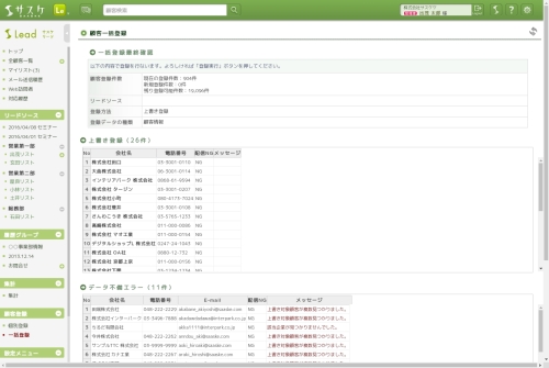 先ほど作成したリストをインポートします。この操作は、左メニュー「一括登録」から行えます。