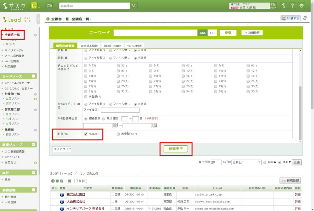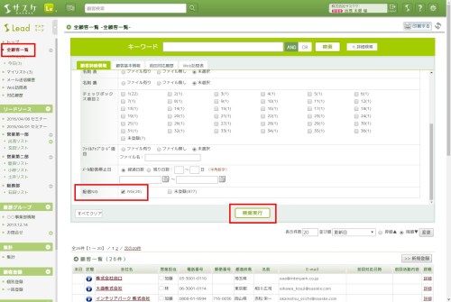 今回の方法は「詳細検索にてDMをNGにする顧客を絞り込み、一括でDMをNGに設定・編集する」方法となっております。そのため、詳細検索にて“NGにしたい顧客を絞り込むための項目”が必要となっております。