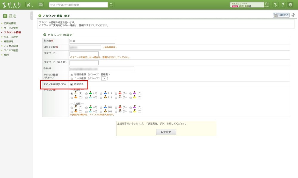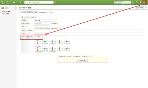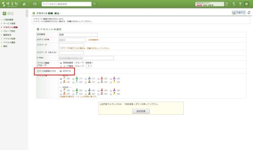 ユーザー様では自分のアカウントのみ、モバイル版を有効化できます。
