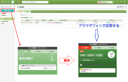 ブラウザフォンで応答した際、発信同様の録音をする・しないが設定できます。
