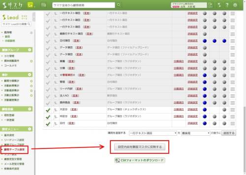その際は、左メニュー「顧客テーブル」より最下部にあります「設定内容を顧客マスタに反映する」というボタンをクリックして頂くことで各種情報を更新することができます。
