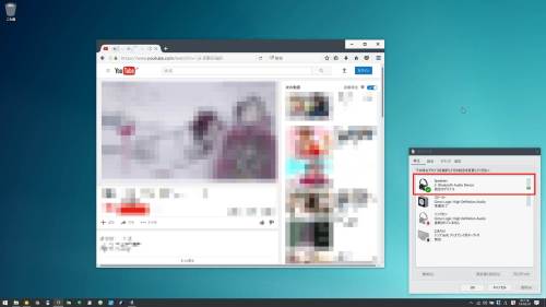 実際にブラウザから音が再生されるかどうかは、Youtubeなどで音を流すのが一番分かりやすい方法となります。音を流して【右側のグラフが反応している=パソコンがスピーカーとして認識しているデバイス】ということがわかります。