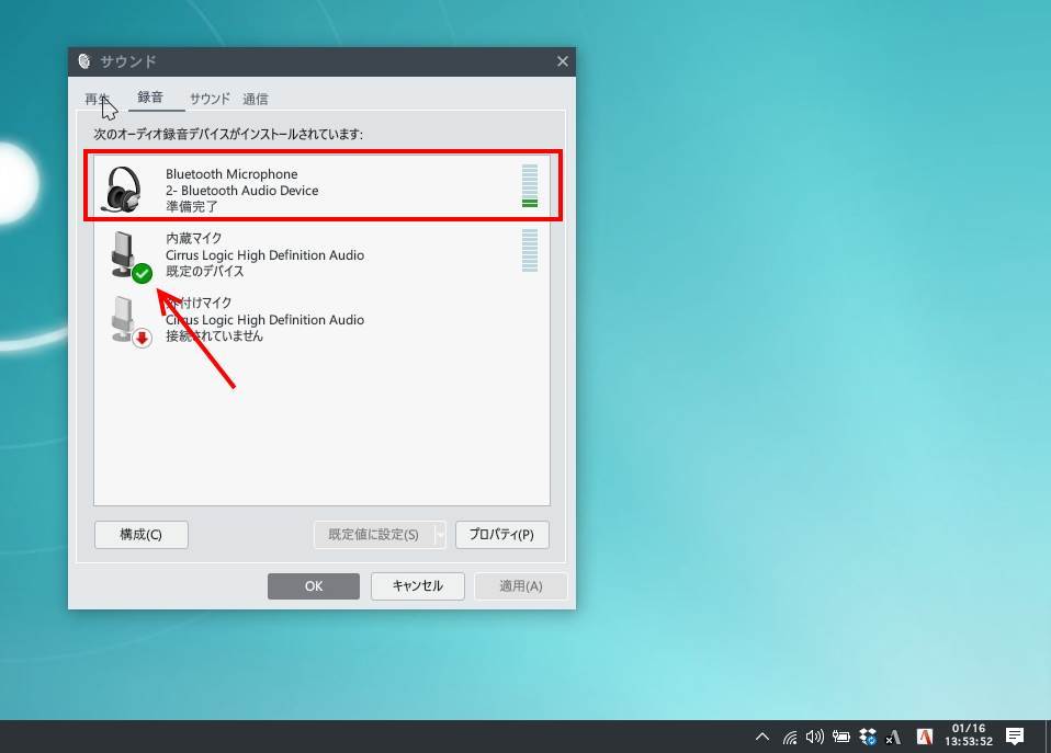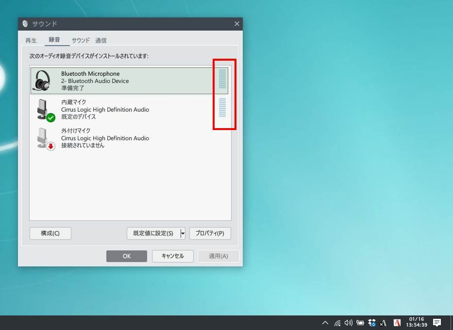 マイクが動いてるかを確認(録音デバイス)