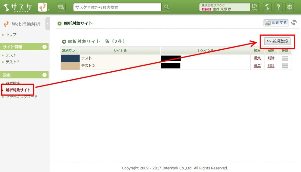 Web行動解析の対象サイトを増やしたいなー… と思ったときは、以下の操作で簡単に追加できます!