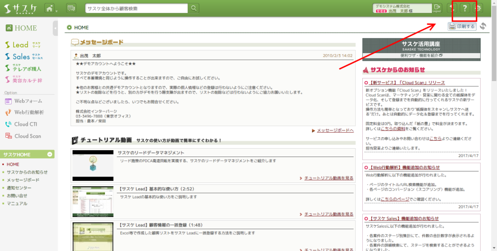 弊社営業担当、もしくはサスケの右上「?アイコン」よりお問い合わせ下さい