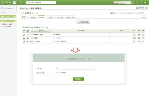 続いてWebフォームで配信停止ページを作成します。