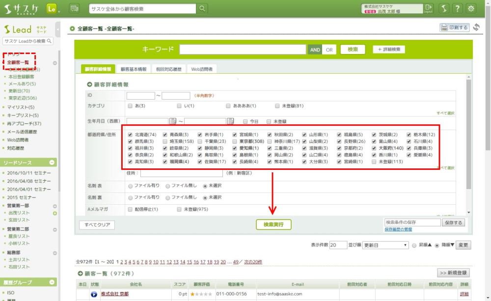 検索条件の保存を設定するには、一度各リストで検索を実行する必要性があります。