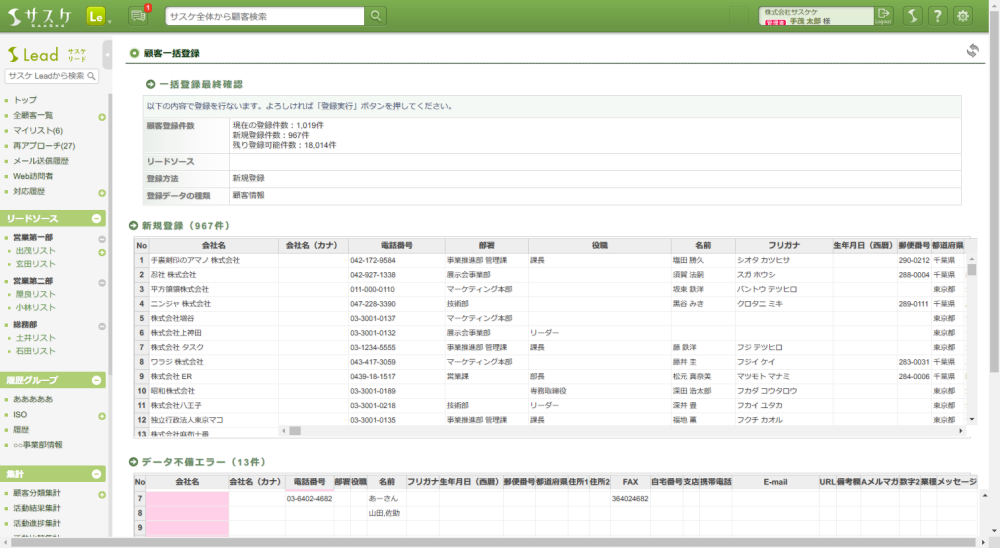 ※パソコンのスペックによって変わってきますが、目安として2,000~3,000件ずつであればすんなりとインポートを完了できるケースが多いようです。