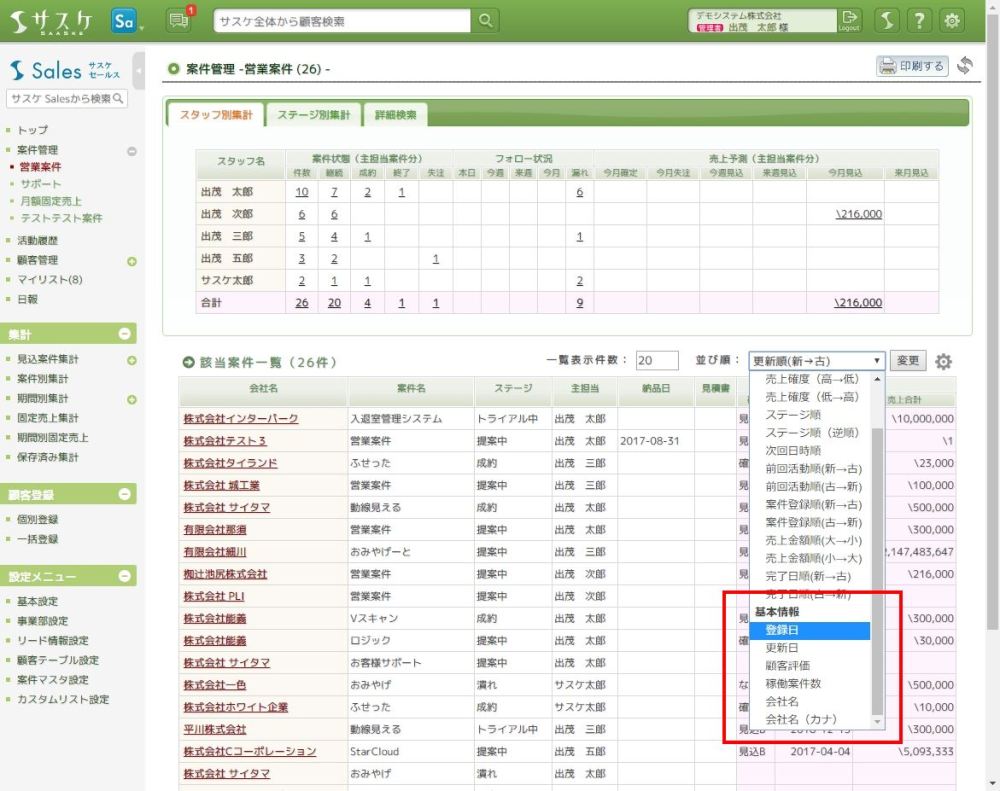 2017/05/31 サスケSalesに既存機能のバージョンアップがされました!