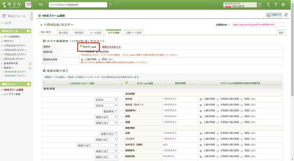 作成済みのWebフォームを「サスケ顧客番号」で連携させるには?