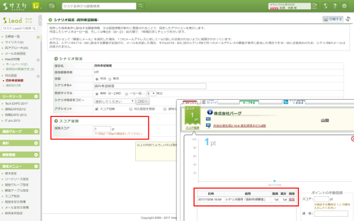 顧客にスコアを追加するアクションです。 - 対応履歴を登録