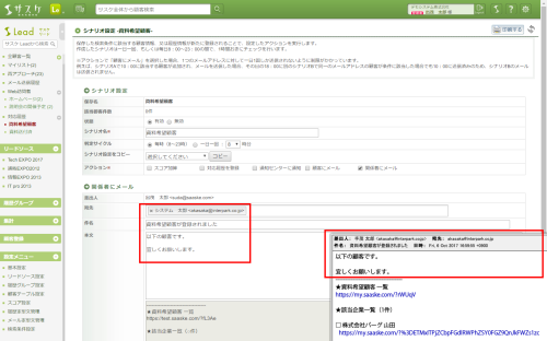 検索条件へ新たにヒットした顧客に対してメールを送るアクションです。なおメール送信は1つのアドレスに対し1日1回、初回のみのとなっております(重複して送られません)。 - 関係者にメール