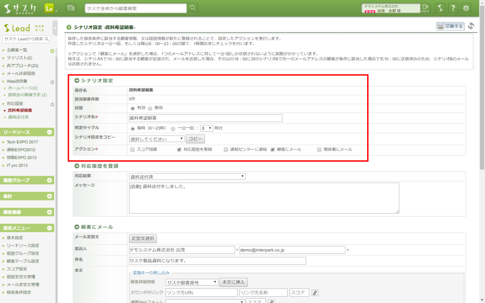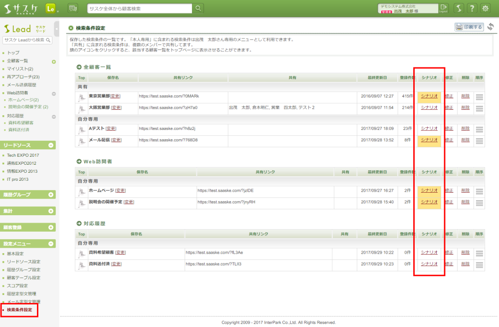 サスケLeadのアップデート【検索条件のシナリオ機能】