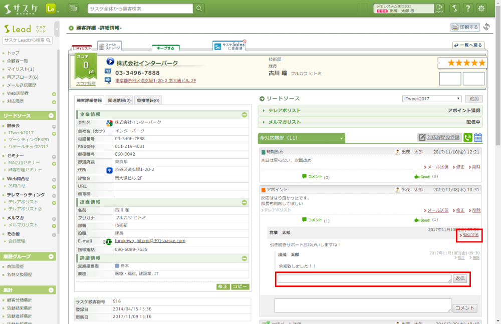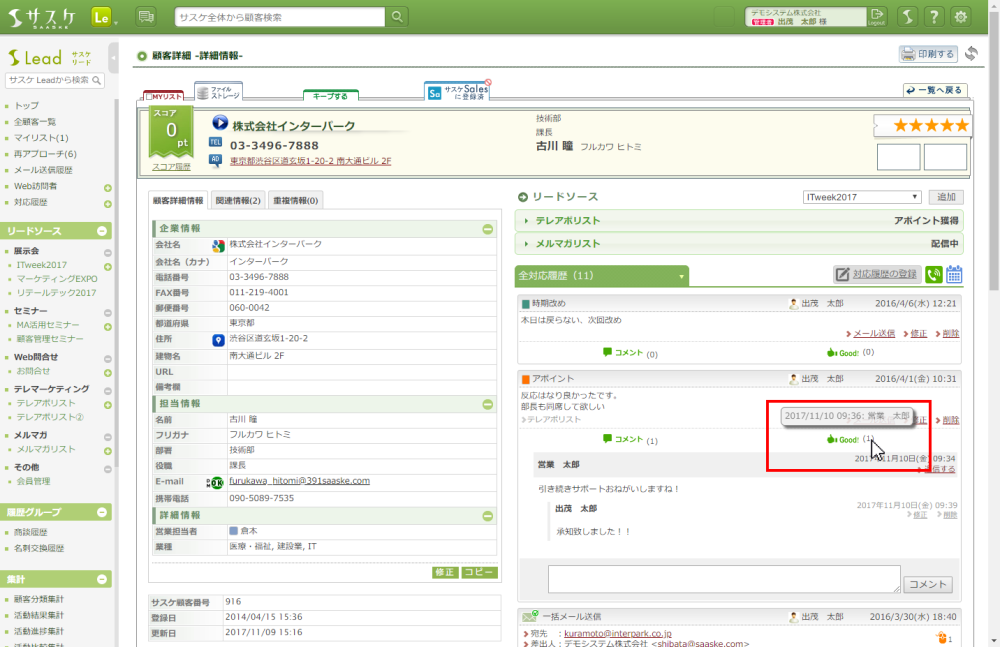 サスケLeadのアップデート【対応履歴への「コメント」機能】【Goodの確認機能】