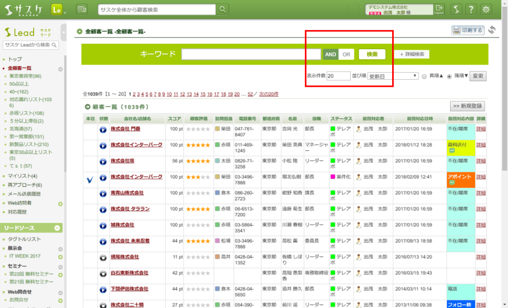 Lead 2018/01/11 検索バーにある「AND」と「OR」のボタン サスケの仕様について、困ったとき 【ANDとORボタンとは…】サスケLeadのキーワード検索バーには「AND」と「OR」のボタンがあります。この「AND」と「OR」ボタンは“キーワード検索でのみ”利用できますので、ご注意下さい。 なお、ANDとORの検索につきましてはサスケLeadの「詳細検索」機能強化の記事をご参考ください。