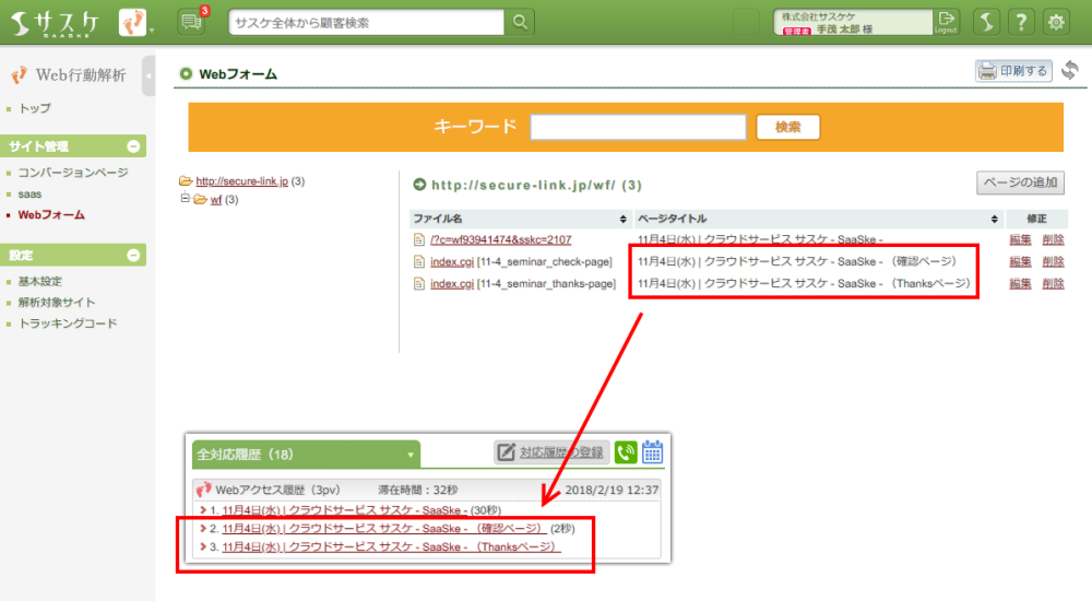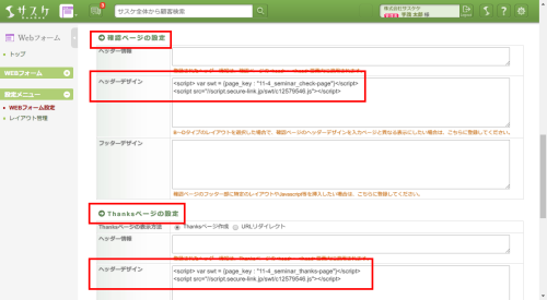 今回は「サスケ Webフォーム」の「確認・サンクス画面」での例をご紹介します。