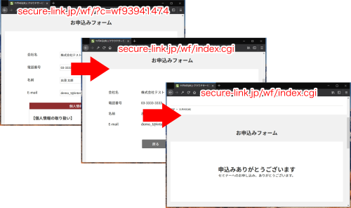 この確認画面とサンクス画面を解析したい!というときに識別キーを使用します。