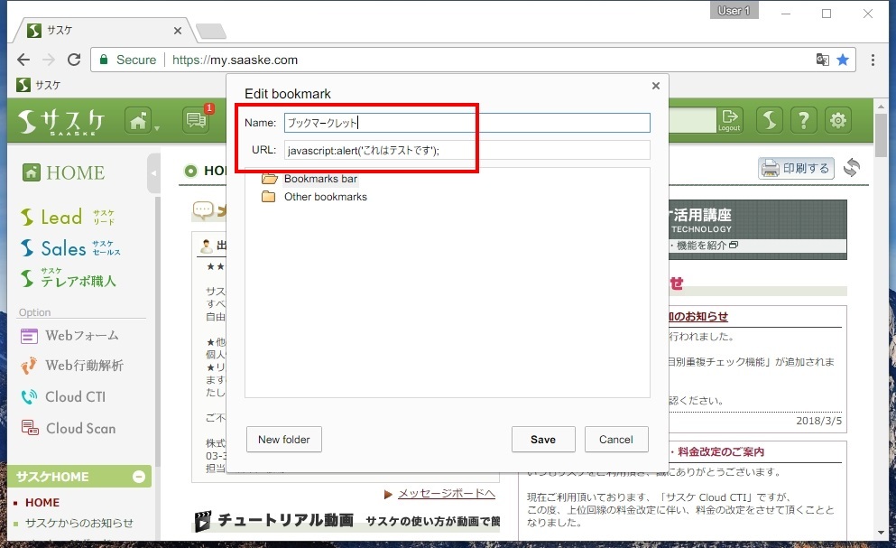 ※本機能(ブックマークレット)はサスケのサポート対象外とさせて頂きます。ご了承くださいませ。