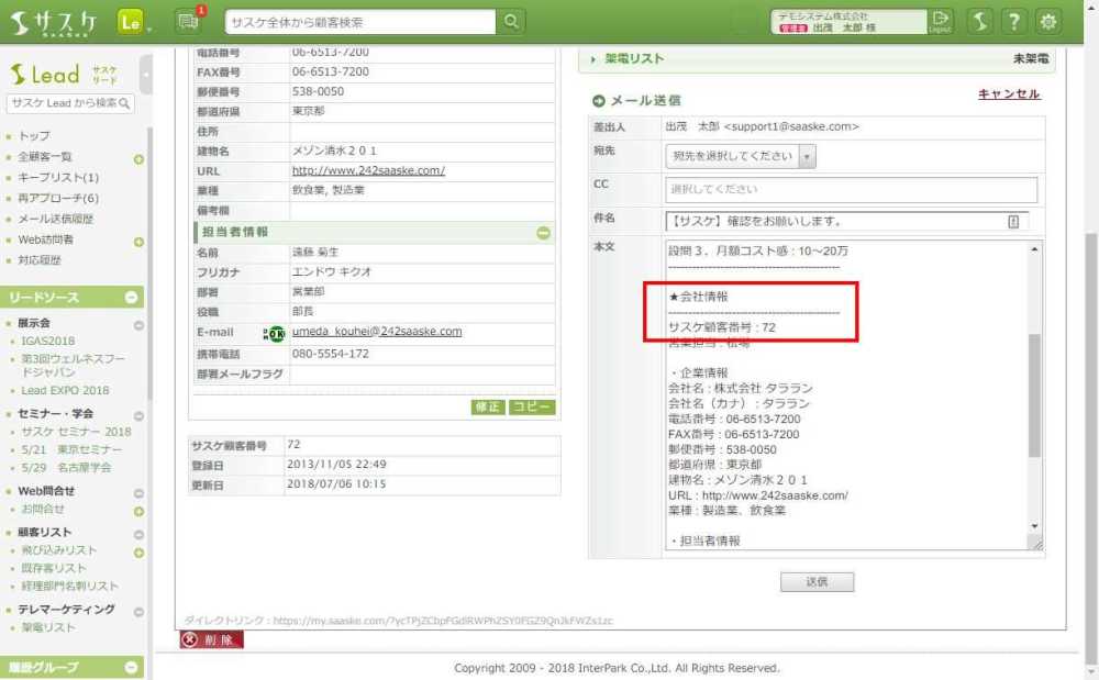 サスケLeadのアップデート【サスケ顧客番号の各所へ表示機能】