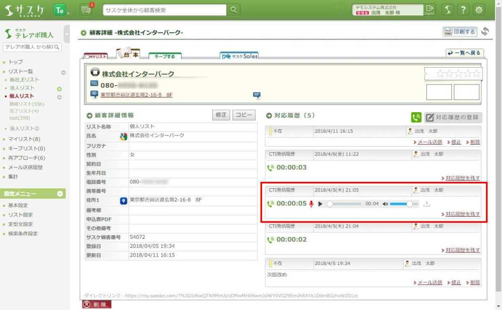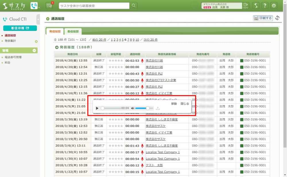 Cloud CTIで発信、もしくは着信した際に録音データを保存することが出来ます。