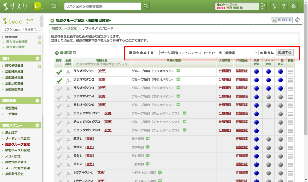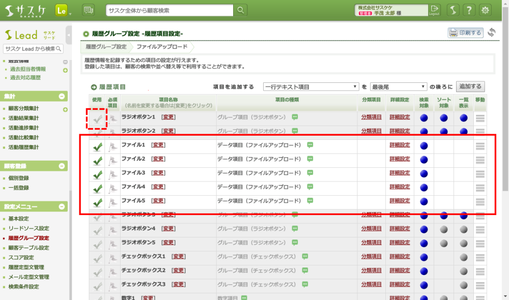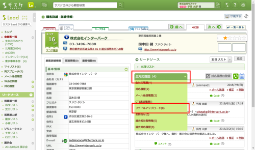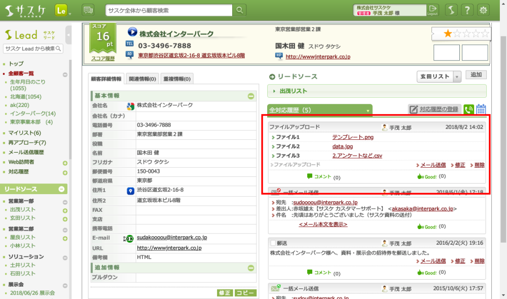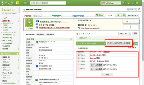 サスケLeadでは「ファイルストレージ」機能がありますが、対応履歴と並べて見ることは出来ません。