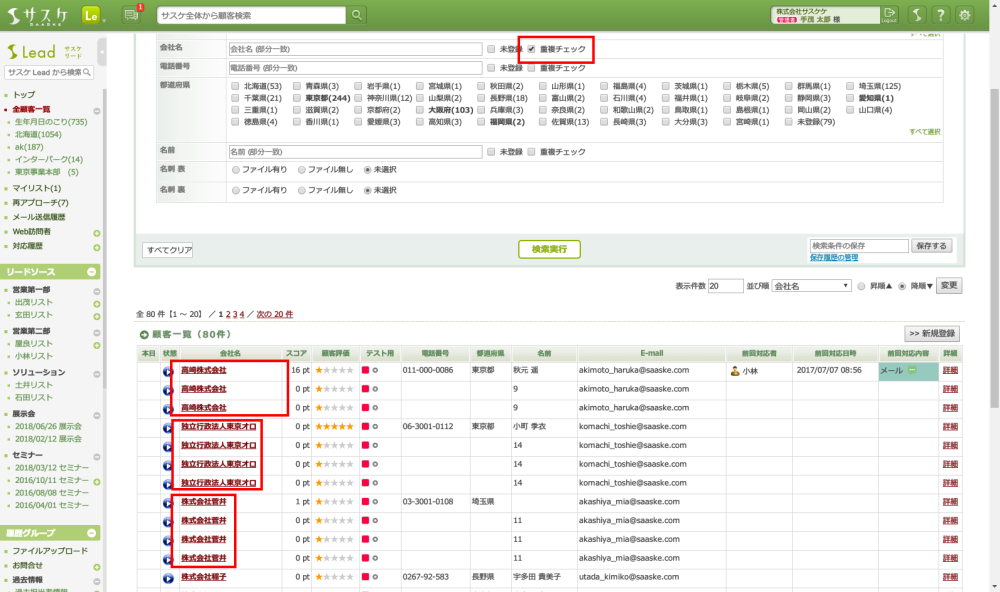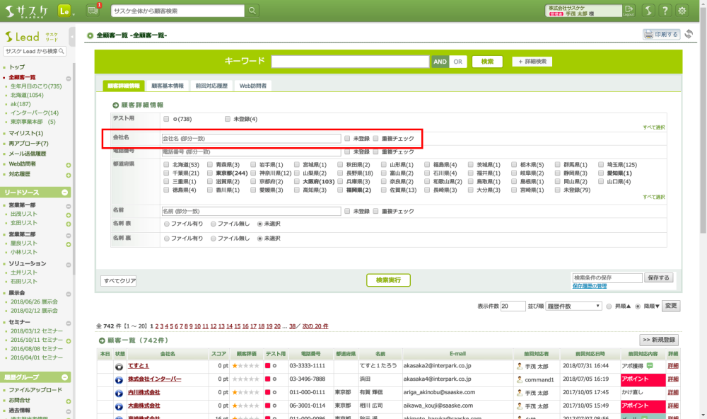 完全に一致する顧客データを検索することが可能です。