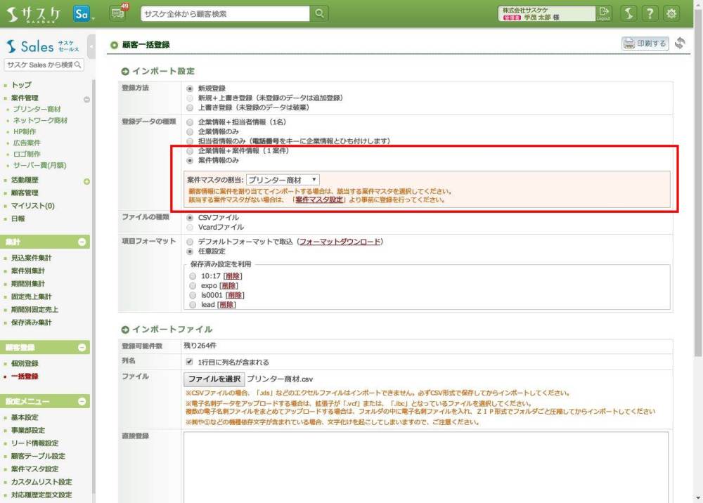 サスケSalesのアップデート【「案件情報」のインポート機能】